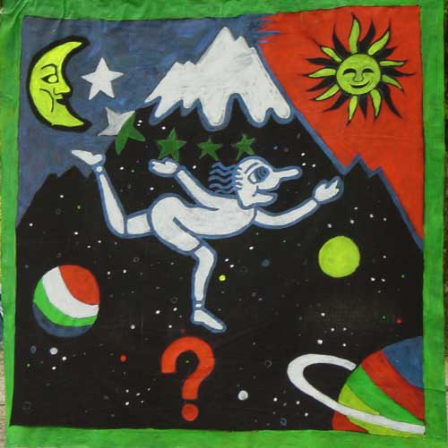 manas用バティック。布に蛍光油性 塗料で着色。ブラックライト対応(2002)